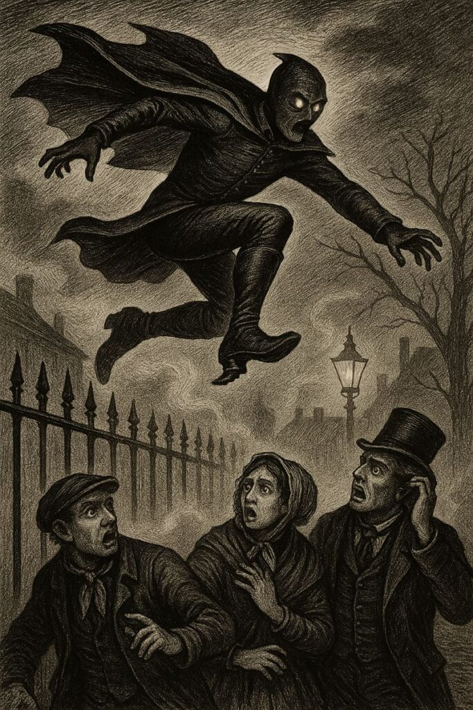 Mais c’est sa capacité de saut qui frappe le plus les témoins. Spring-Heeled Jack bondit par-dessus les murs, les haies, même les maisons basses avec une facilité déconcertante. Cette agilité surhumaine, impossible à expliquer par la science de l’époque, alimente toutes les théories sur sa nature surnaturelle.